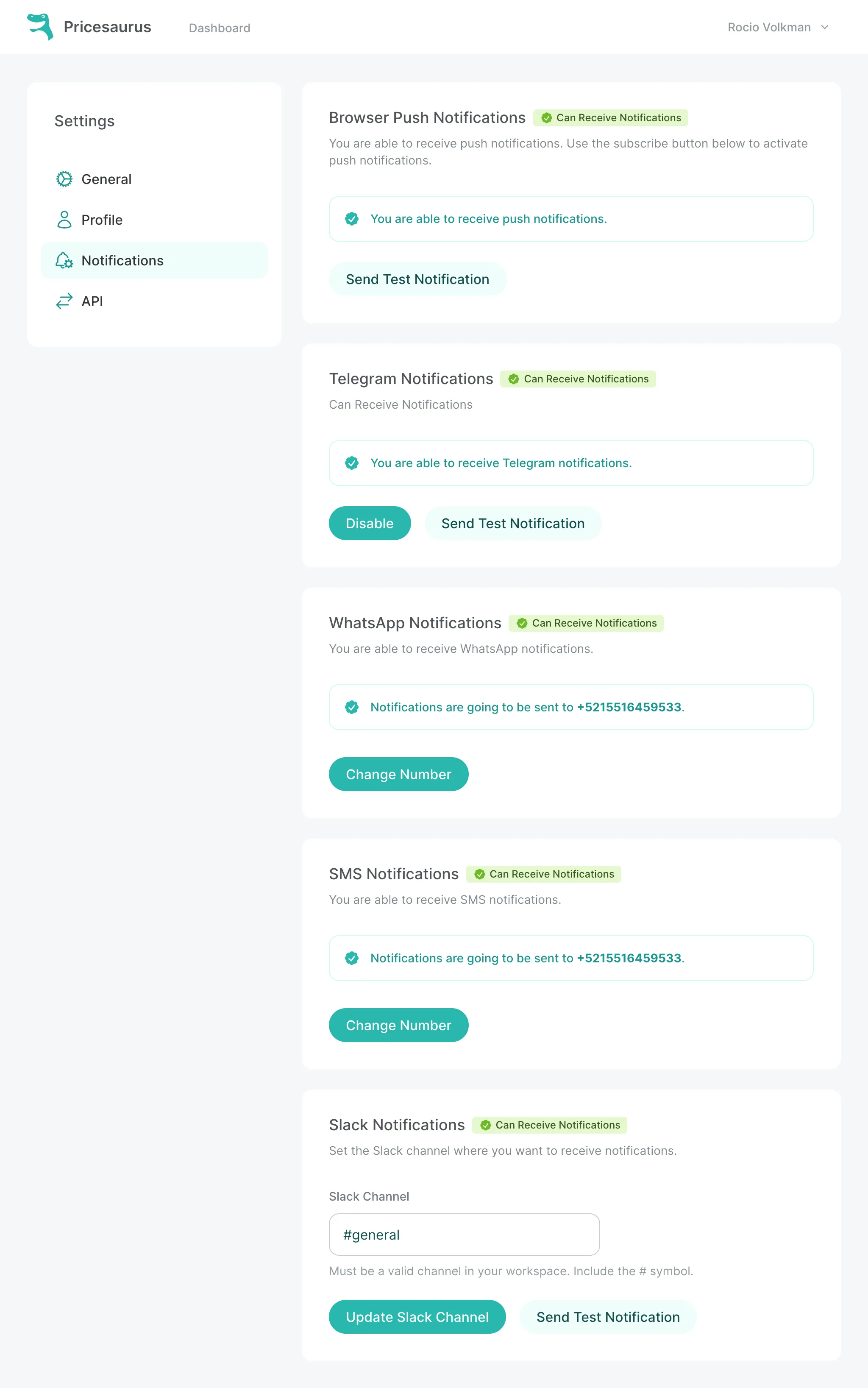 - Users can receive price alerts through various channels like WhatsApp, Email, SMS, Slack, Discord, and Telegram. Push Notifications will also be available once we release our mobile app.